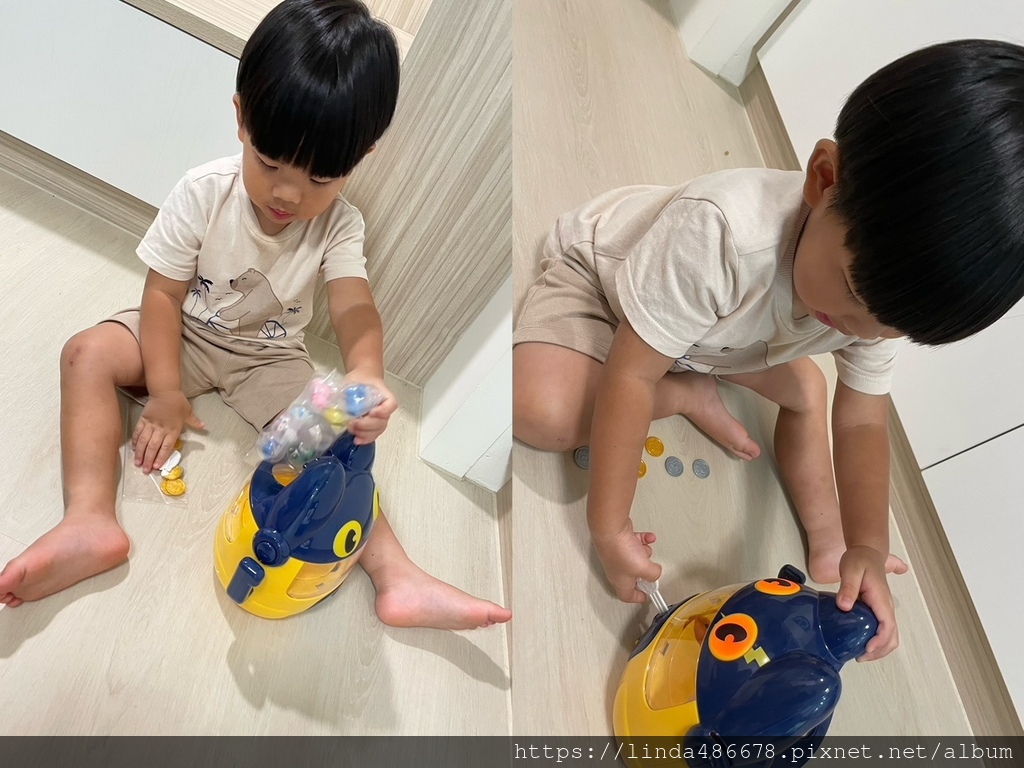 我自己覺得最加分的一點,就是 扭蛋球可以自行更換內容物。平常可以放小零食、小貼紙,甚至是媽媽準備的小驚喜,讓每一次轉出的結果都不一樣。對孩子來說,這份未知感才是最有趣的,也讓玩具耐玩度大幅提升。